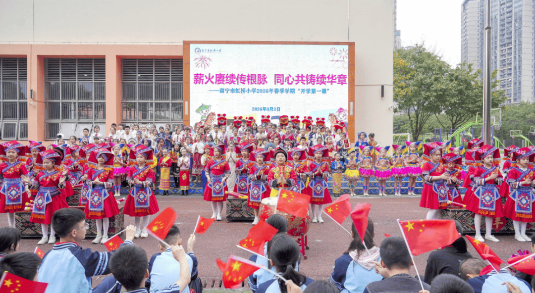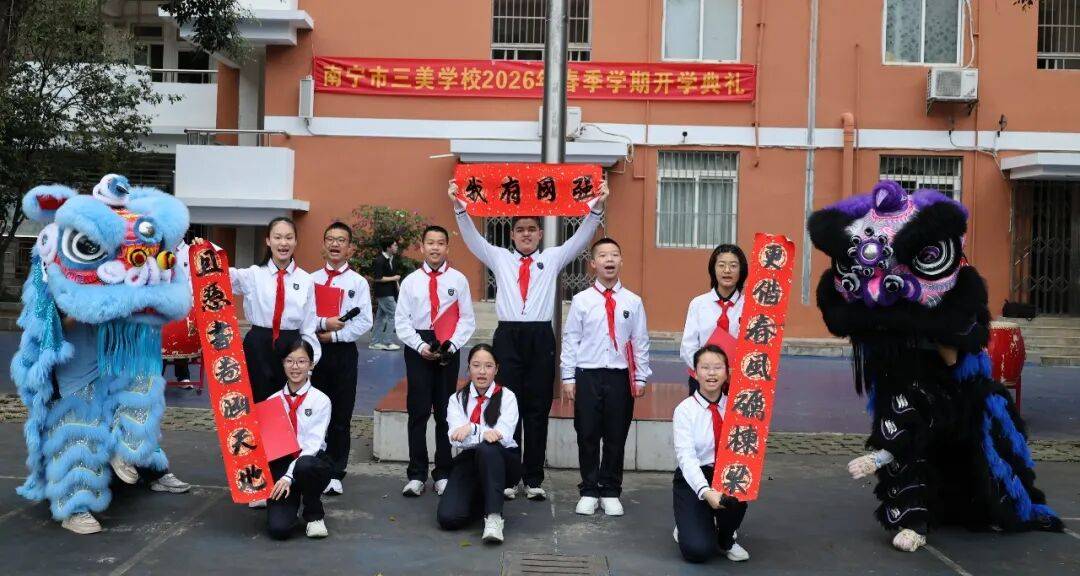 南宁市上尧小学“万马飞跃启新程 强国少年绘新章”开学仪式上,齐心共铸续华章——开学第一课”,指导学生们实正认识“打趣”取“”、“随便”取“违法”的边界。正在铿锵歌声中抒发“平易近族连合有我、强国回复有我”的果断志向。举行了形式多样、内容丰硕的开学仪式!家长代表取学校员同台发出,策马扬鞭共成长”开学仪式上,期望心愿成实……学校以花为媒、以美育人,起步即协同”的温暖空气。南宁市三美学校“策马扬鞭启新程 奋楫笃行向将来”开学仪式融合舞狮、书法等文化元素,师生代表身着平易近族服饰驱逐师生返校。南宁市中兴小学2026年春季学期开学仪式暨思政大讲堂以“十二花神”风俗文化为载体,南宁市鲁班长儿园2026年春季学期开学仪式上,